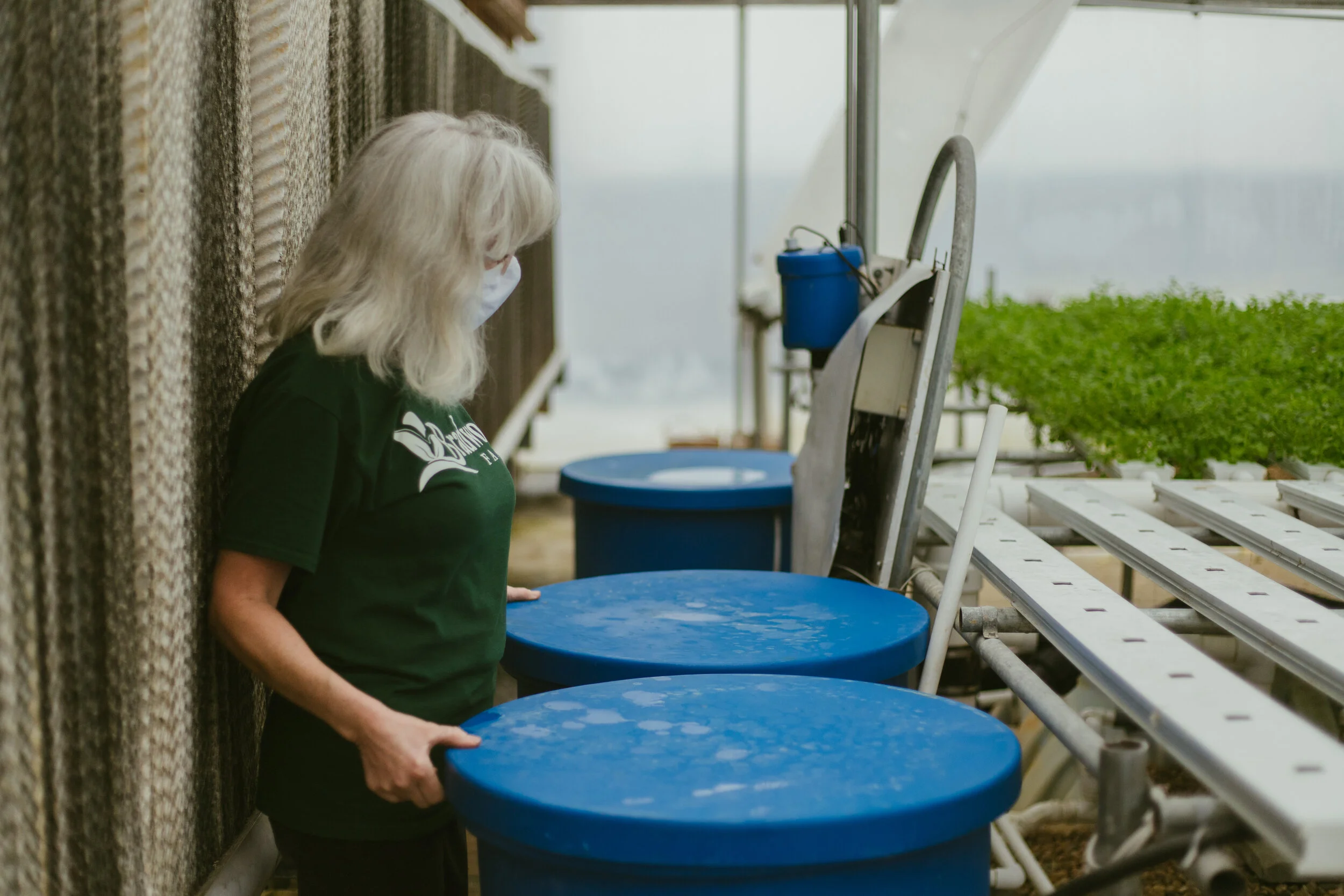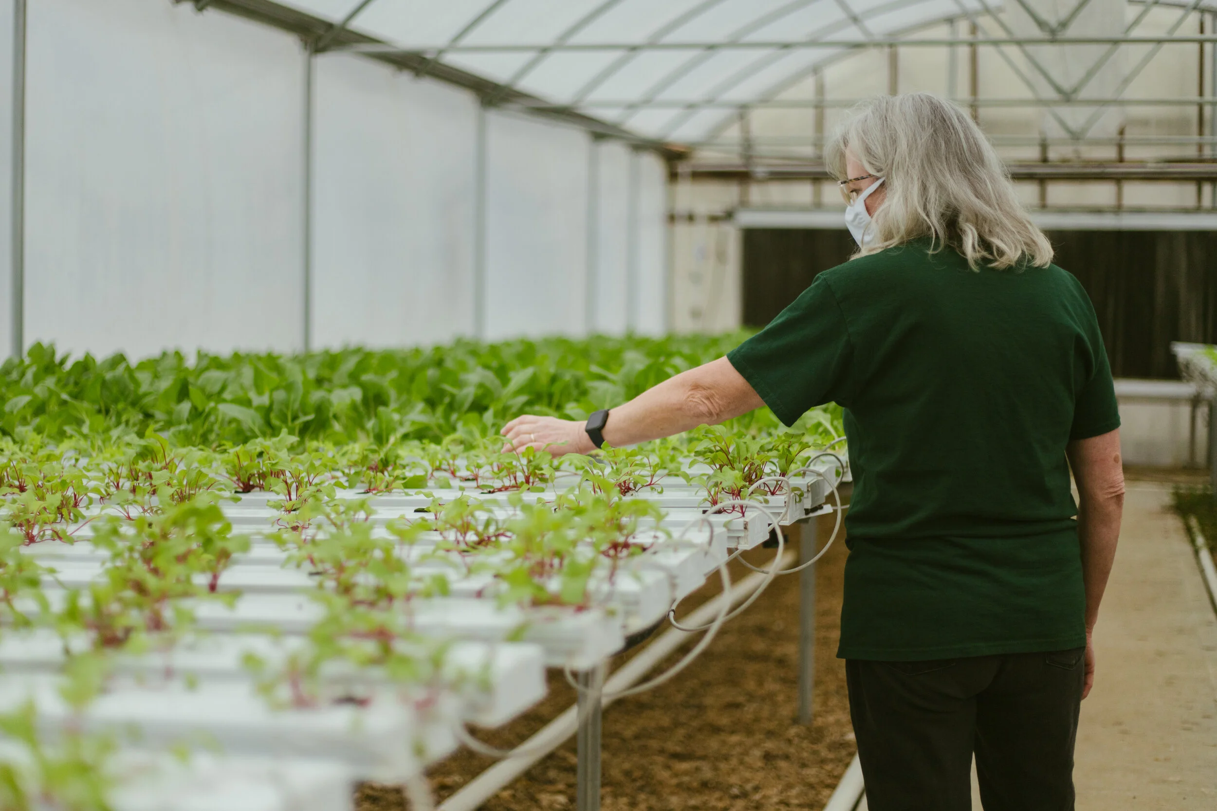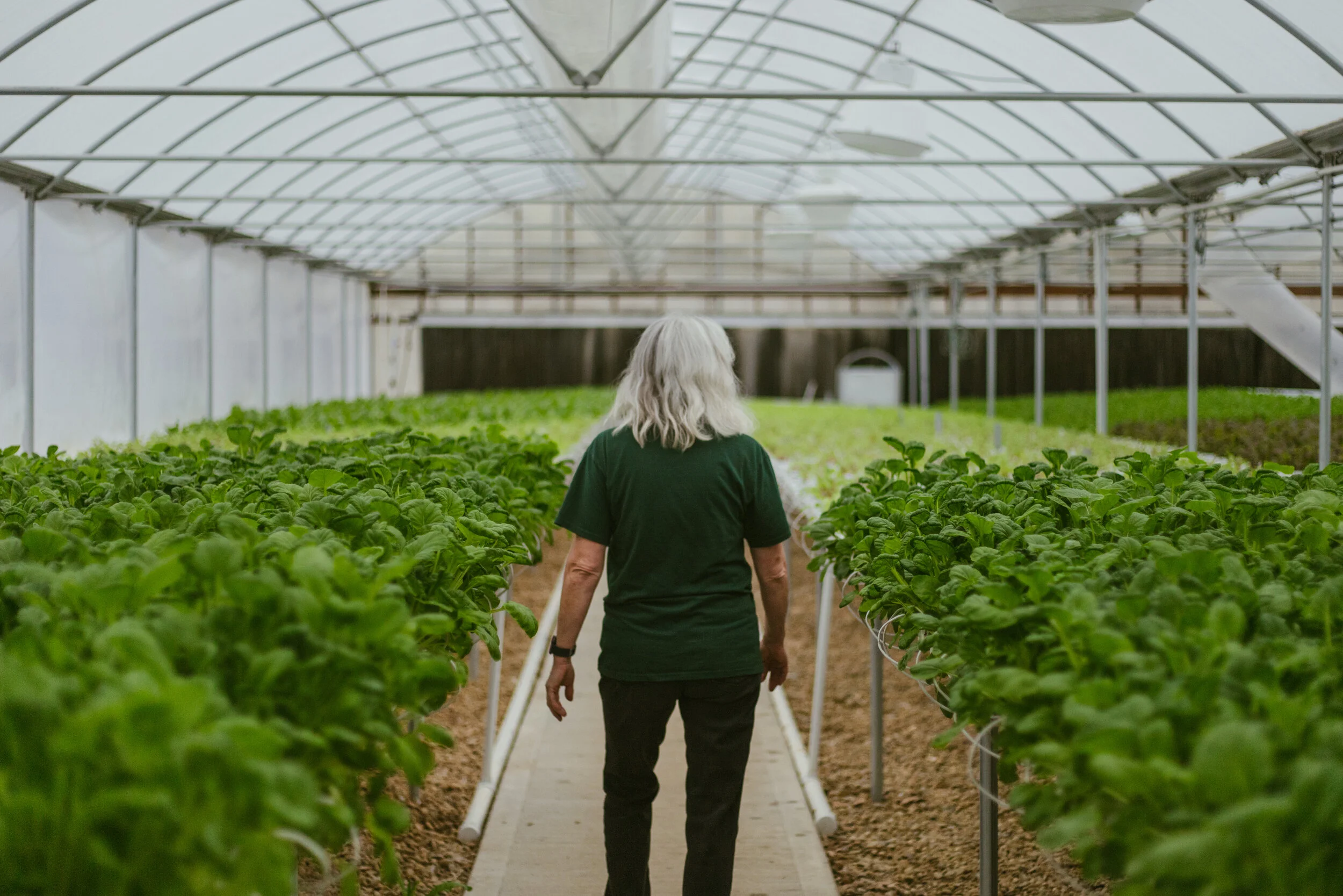Their greenhouse is around 5,000 square feet. They average 800 heads a week in the winter and closer to 1,100 heads a week in the summer.