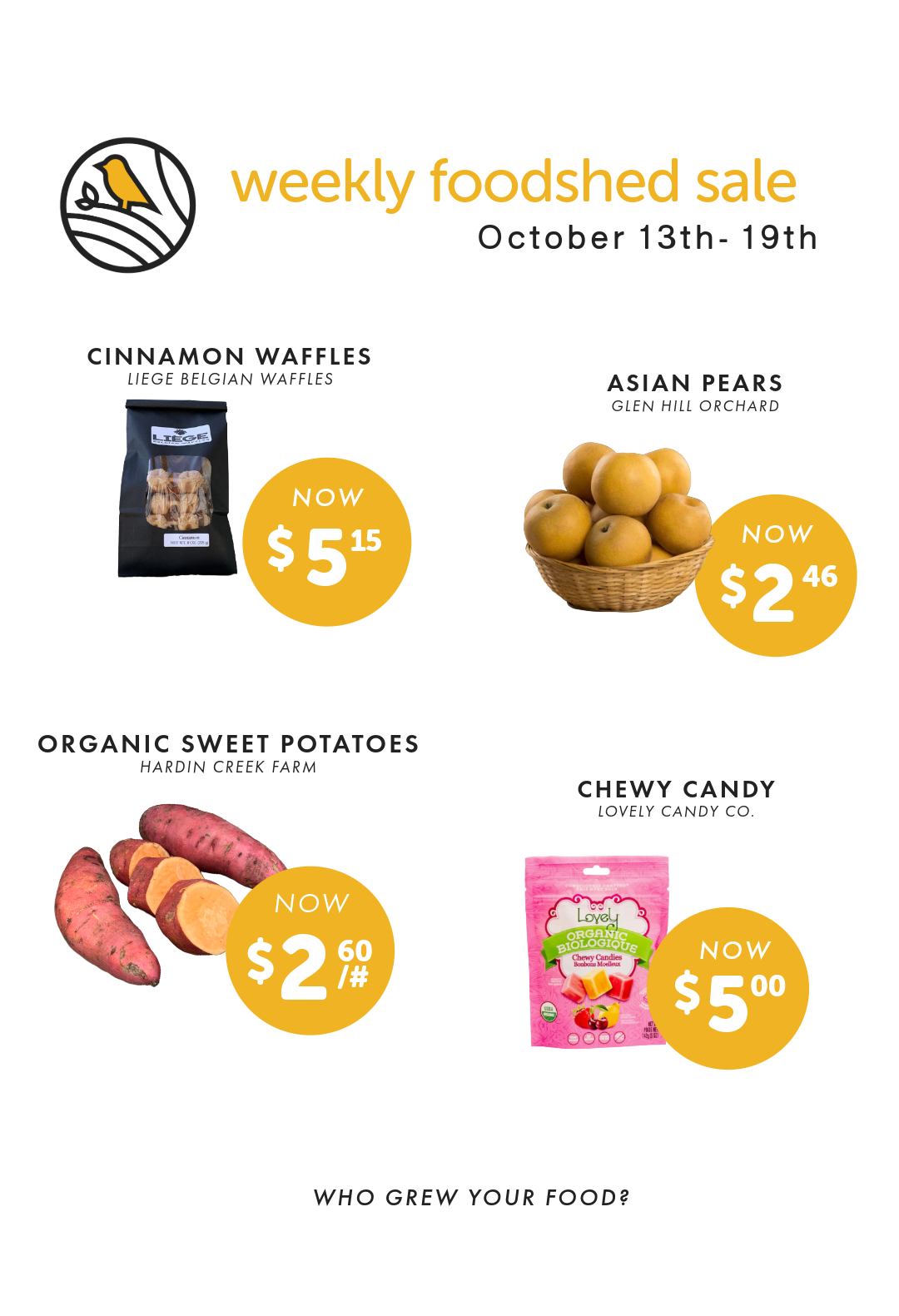 Pick up Folks: If you have questions about your pick up location or what to do if you missed pick up, PLEASE check out that info under MY ACCOUNT after logging in. You can view all info related to your goodies whereabouts from that tab. More details available at yellowbird.com/faq.