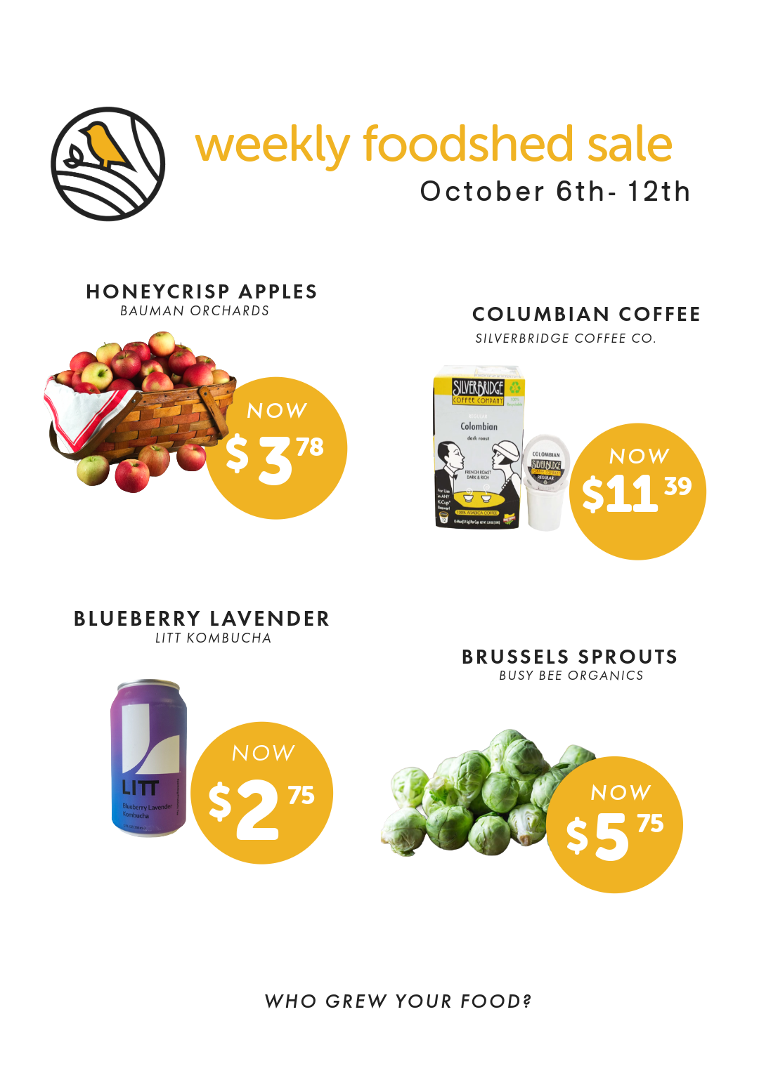 Pick up Folks: If you have questions about your pick up location or what to do if you missed pick up, PLEASE check out that info under MY ACCOUNT after logging in. You can view all info related to your goodies whereabouts from that tab. More details available at yellowbird.com/faq.